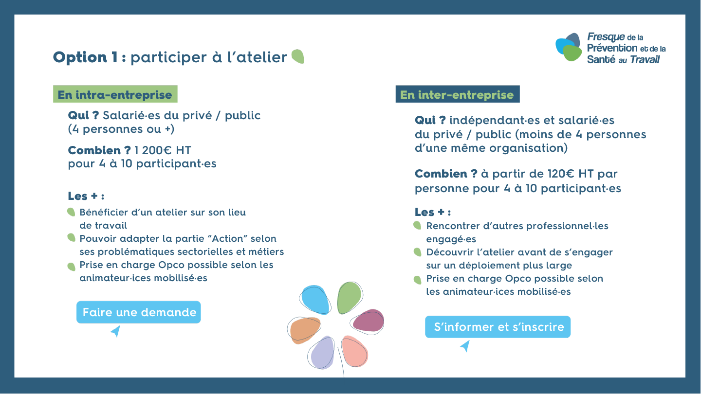 Vous pourrez devenir vous-même animateur ou animatrice de La Fresque de la Prévention et de la Santé au Travail. Informations et inscriptions ICI